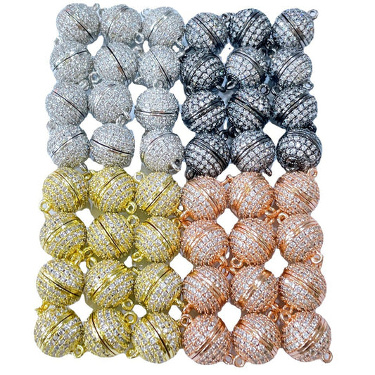 Micro-inlaid zircon copper matrial real 14K gold plated strong color retention 10mm magnetic clasp DIY bracelet necklace ending buckle jewelry accessories